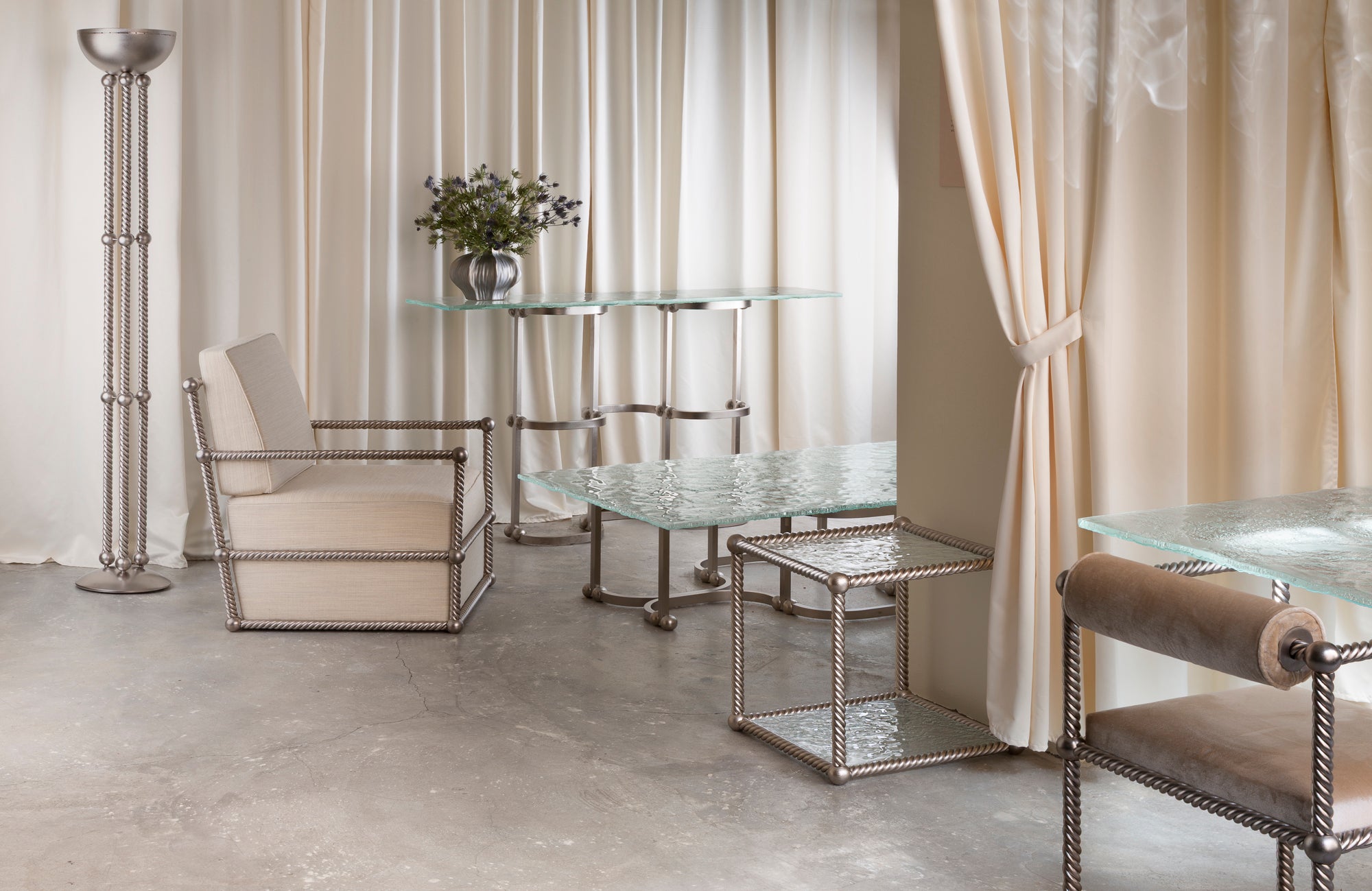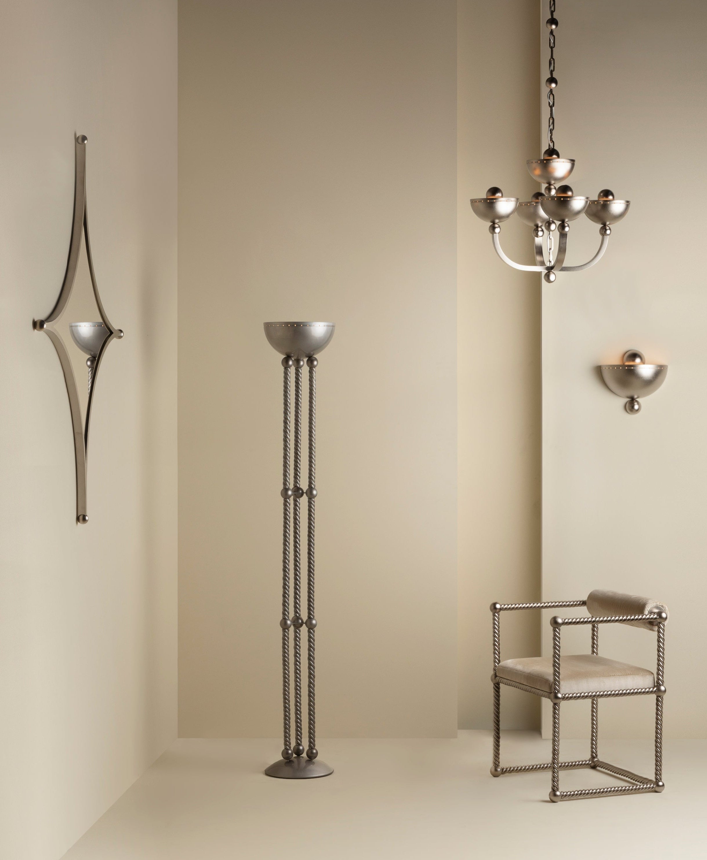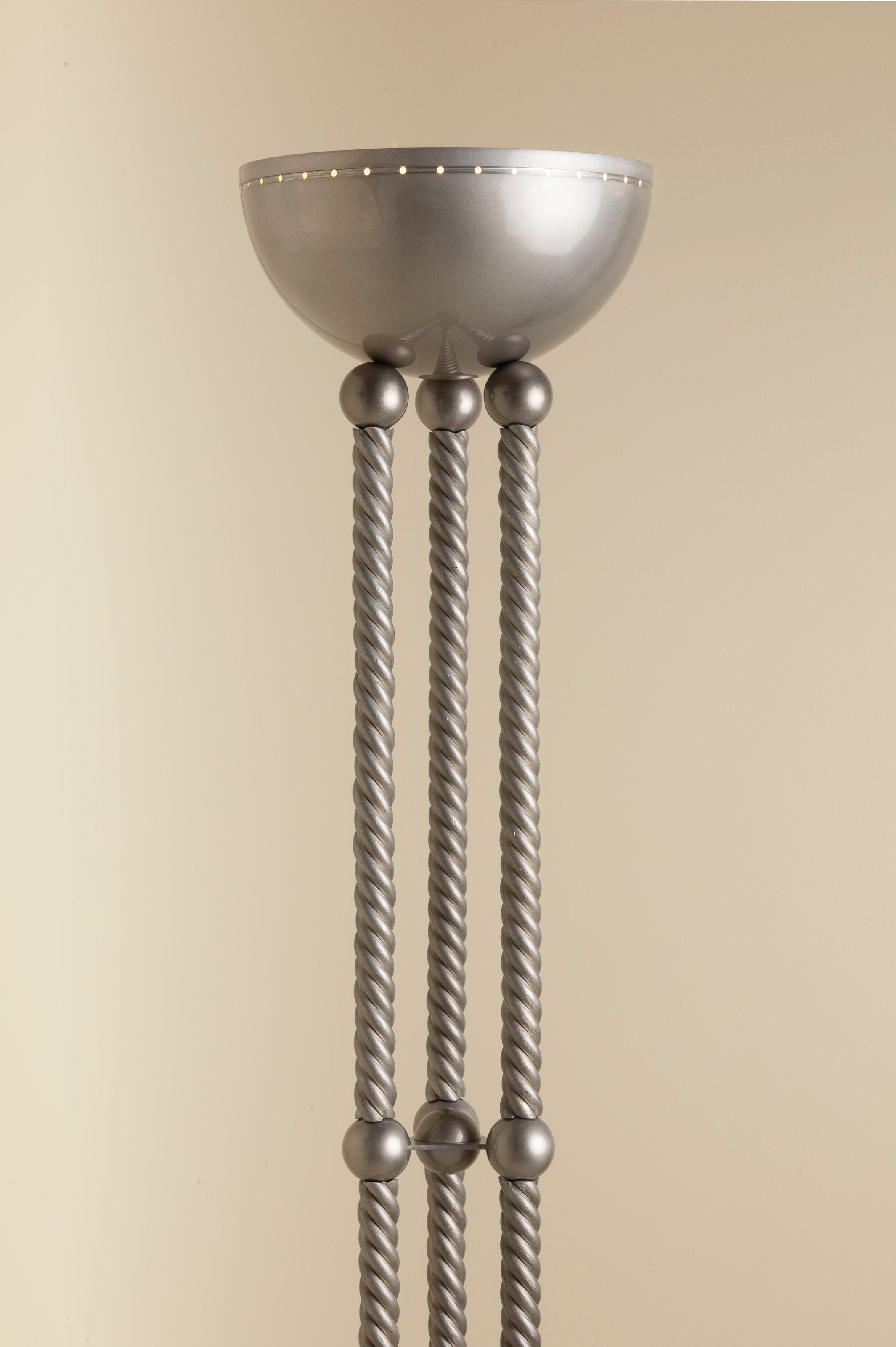 Elancé et sculptural, ce lampadaire en aluminium nickelé conjugue la puissance du métal à la délicatesse d’une ligne ornementale. Sa structure en aluminium torsadé, ponctuée de sphères, incarne un équilibre subtil entre tension et fluidité, entre héritage et avant-garde.